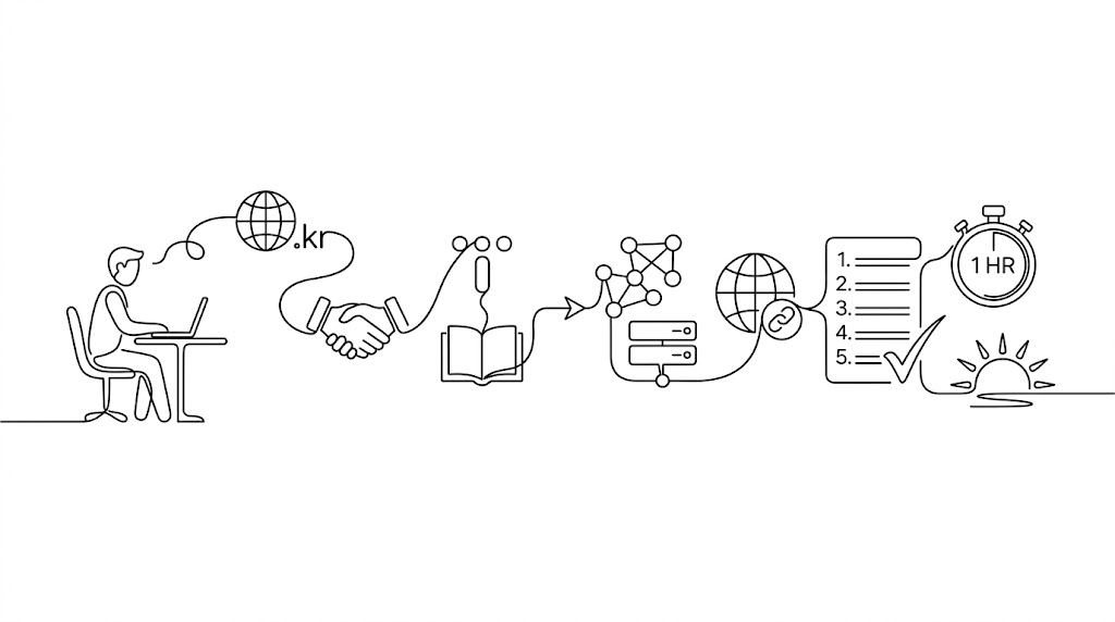 | 1. 도메인 구매 | 15분 | .kr 등록 완료 대기 (약 12분) |