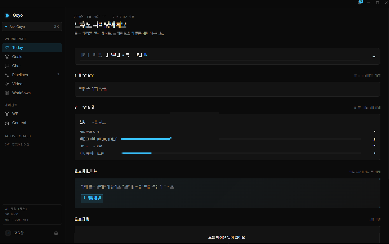 레이아웃을 Pretendard 800 헤더 + 0.5px border 스타일로 정돈. 첫 진짜 사용 시나리오 — "오늘 할 일 1개 → AI 가 30분 단위 행동 계획 생성" 을 end-to-end 동작시켰습니다. 이게 동작하니 앱이 진짜 도구로 보이기 시작했습니다.